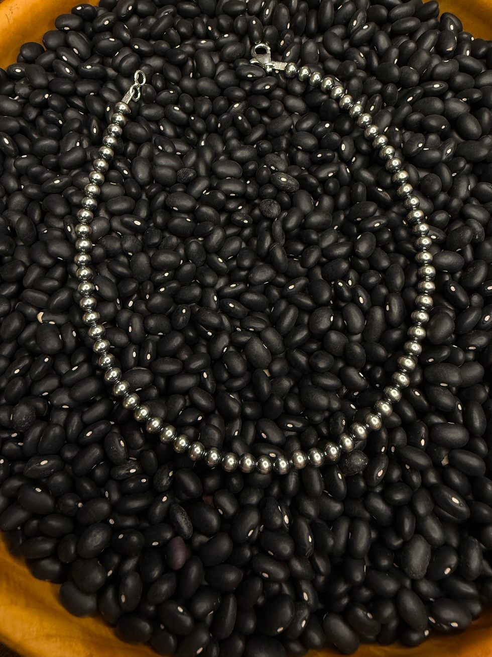 #45 4MM SILVER PEARLS W/ TURQUOISE NECKLACE 18’’
